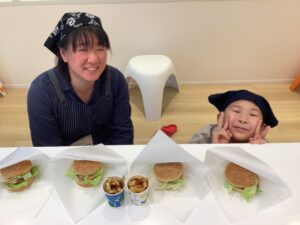 とぉ~っても楽しく作ったよ!「レタスバーガー」と「グリルポテト」上手でしょ(^_-)-☆ お花見に出掛けるのもステキですね✨幸せな気持ちが、心と口の中いっぱい!に広がりまーす !!