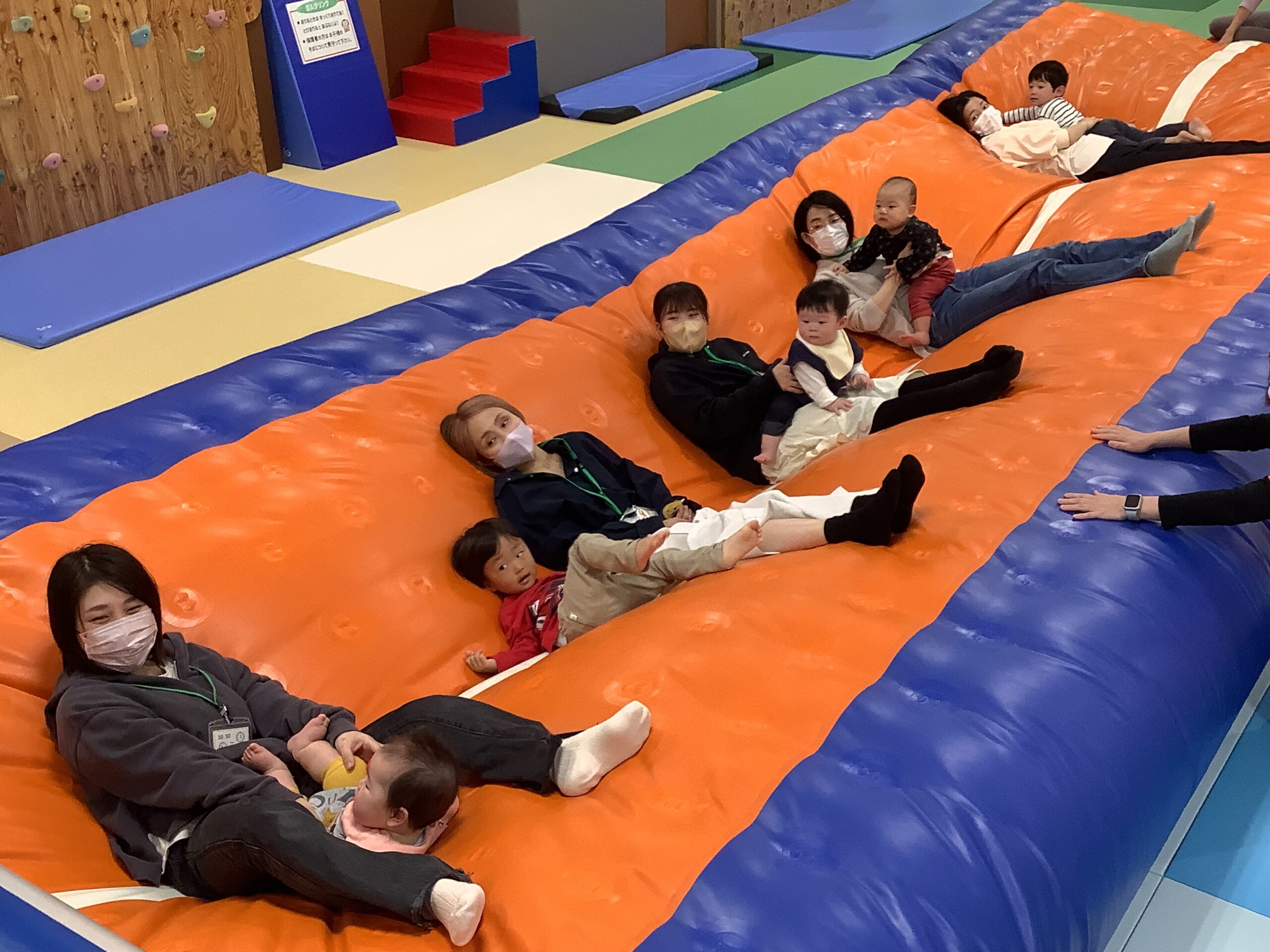 スタート前から泣いてしまうお友だちや、コースから外れてしまうお友だちもいましたが、みんなに温かく見守られながら頑張ってゴール出来ましたよ(^_-)-☆ ちょとドキドキしながら「ふわふわベッド」も楽しみました✨ 来月は5月16日(木)に開催予定ですので、ご参加お待ちしておりまーす !!