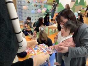 3月に1歳の誕生日をむかえた と~っても!可愛い10人のお友だちが参加してくれましたよ (^_-)-☆ カブッキーからプレゼントをもらい、一緒に楽しく誕生日をお祝いしました!手形・足形が初めてのお子さんもいましたが、みんな上手に取れていましたよ!ステキな思い出になりますように !!