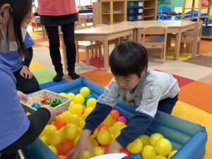 どのお友だちも、上手にボールの中から幸せの「カラフルたまご」を見つけていましたよ!限られた時間で ちょっとドキドキしましたね !! プレゼントをもらったみんなの瞳が「カラフルたまご」のようにキラキラ輝いていました。健康で幸せな一年になりますように✨