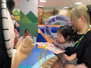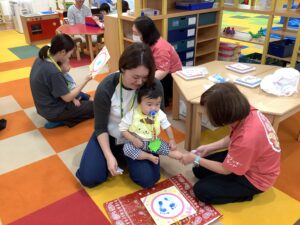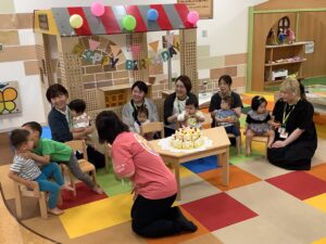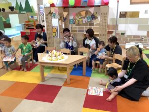 秋晴れの青い空のもと、7人のステキなお友だちが お家の方と一緒に参加してくれました (^_-)-☆ カブッキーからプレゼントをもらい、楽しく歌ったり 記念写真を撮りましたよ!手形足形も みんな上手にできました✨ お誕生日 おめでとうございまーす!