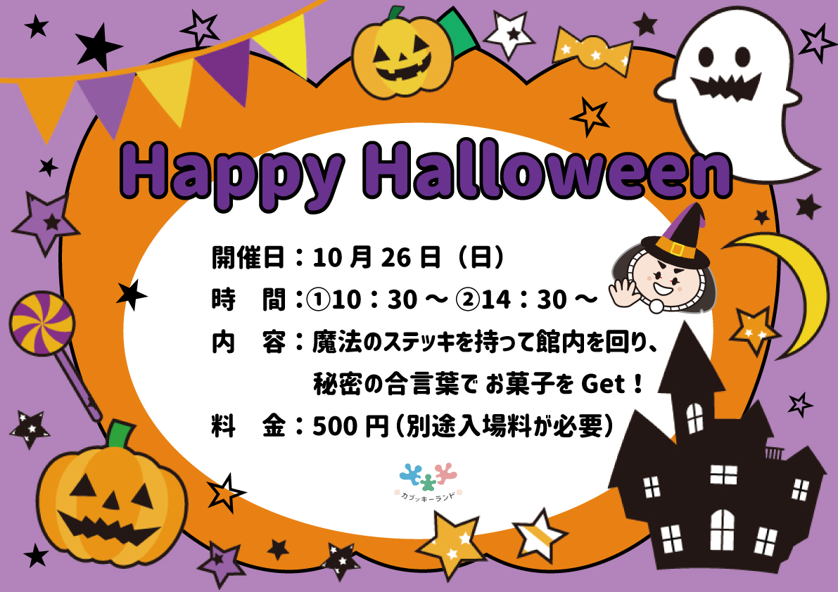 【内 容】魔法のステッキを持って館内を回り、秘密の合言葉「お菓子をくれなきゃ いたずらするぞ!」でお菓子を Get!しよう (^_-)-☆