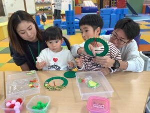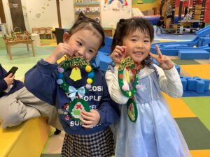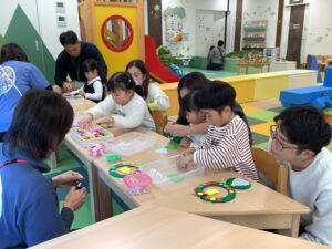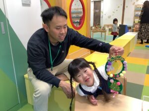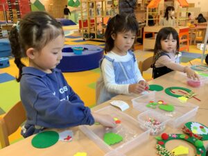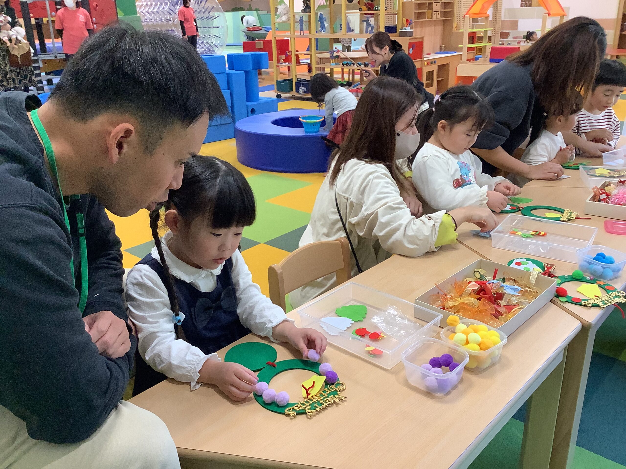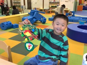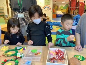 みんな!とぉ~っても楽しそうにビーズやリボンなどの飾りを選び、よぉ~く考えながら夢中で並べていましたよ (^_-)-☆ お家の方と一緒に作ったステキな リース✨クリスマスが待ち遠しいですね!