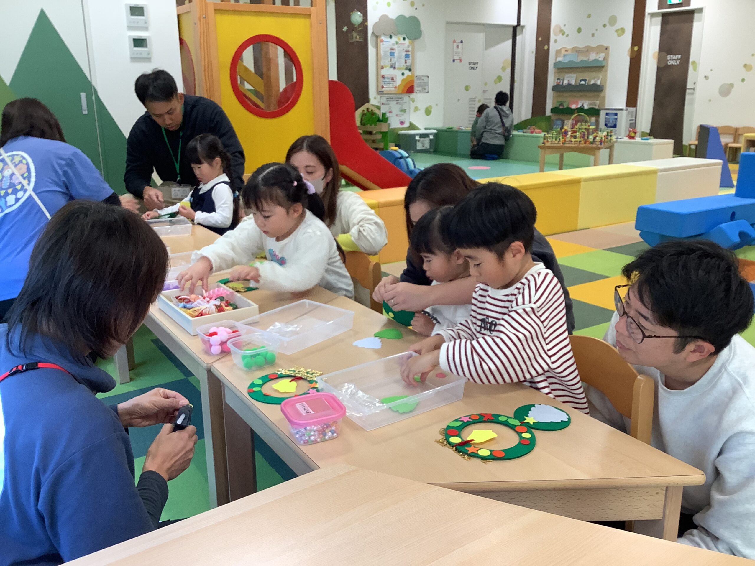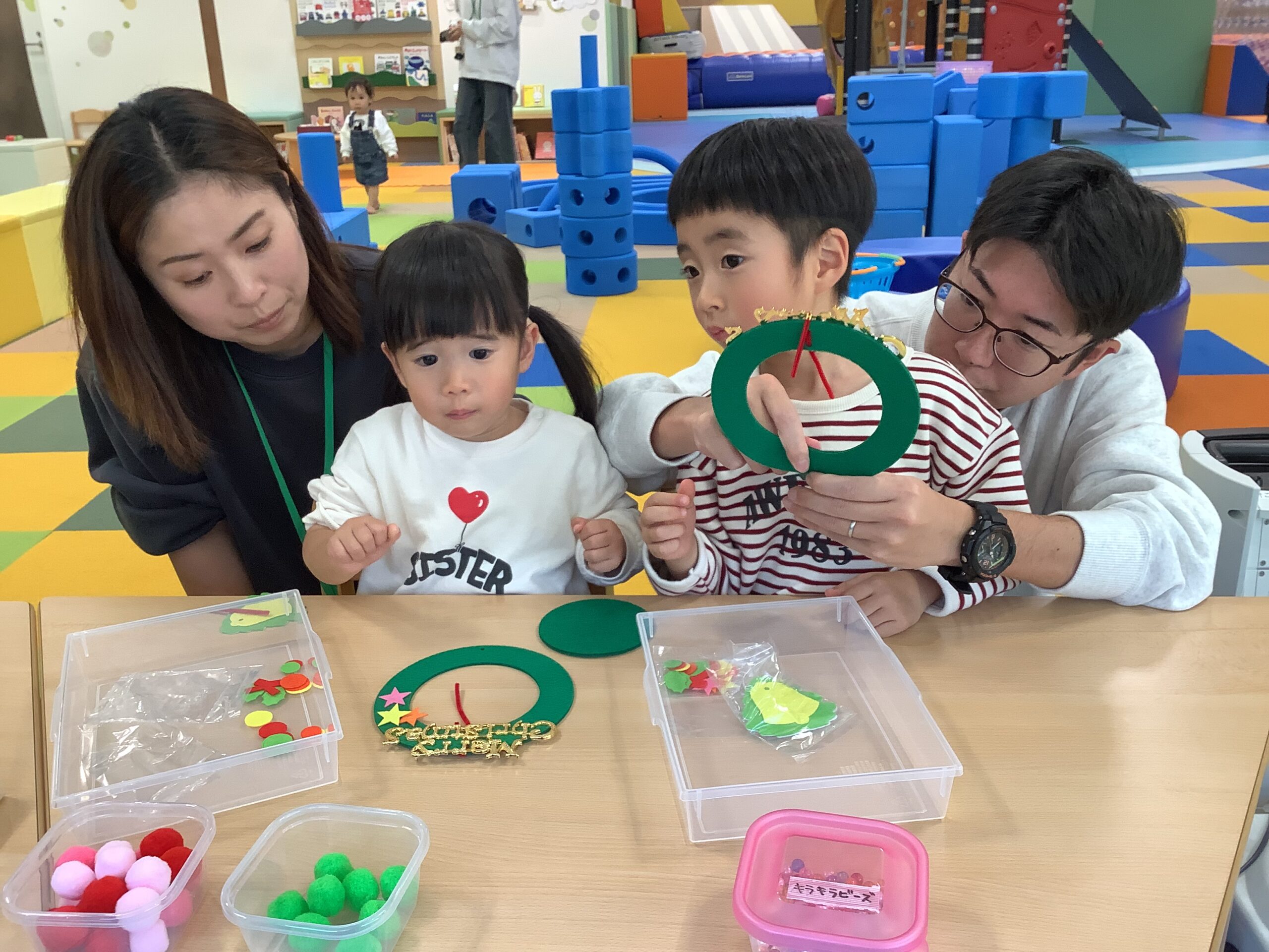 今日は『クリスマスリース作り』が、すくすくひろばで開かれました (^^♪