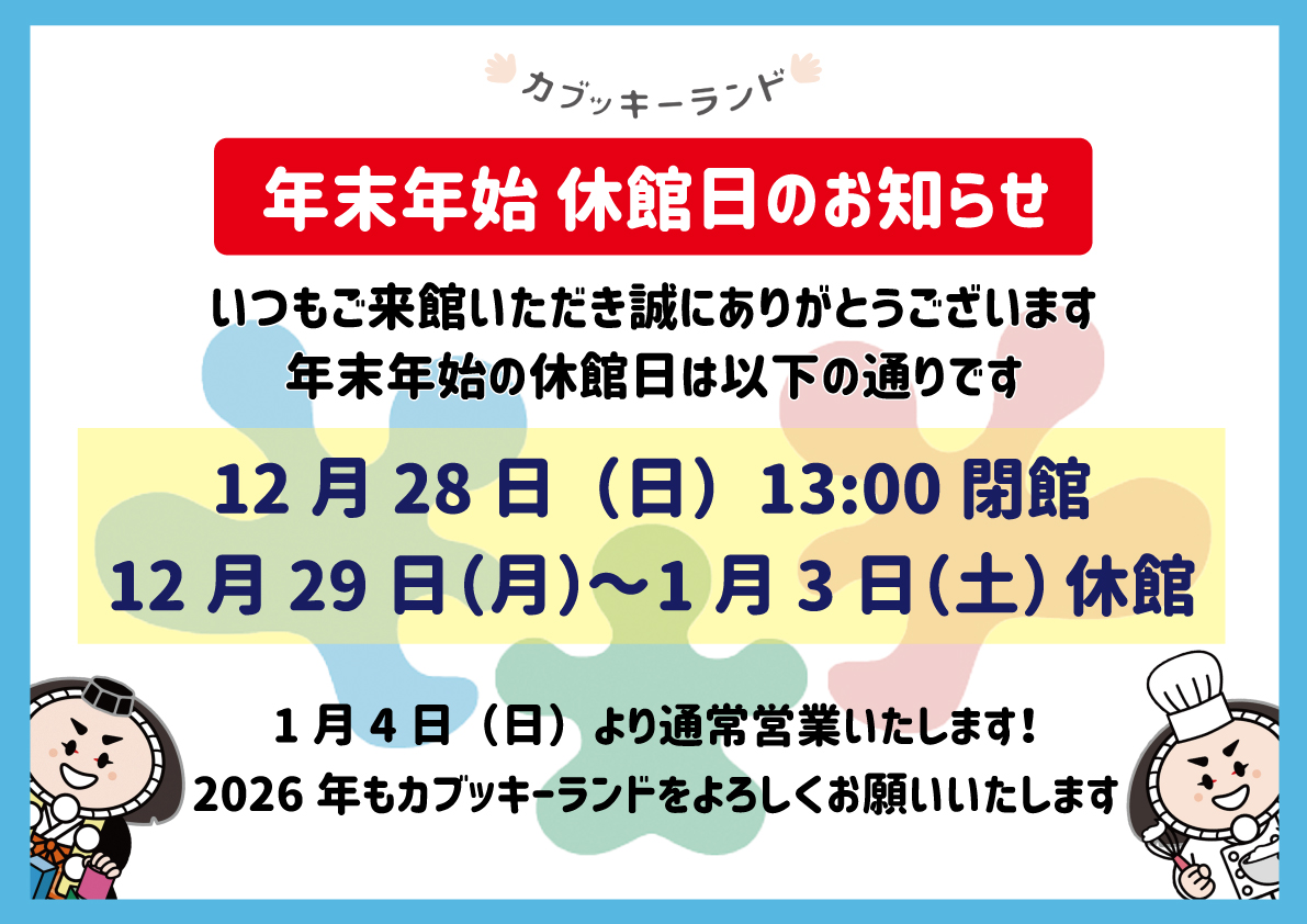 ※12月28日(日)は13時閉館となります ので、 ご注意ください!