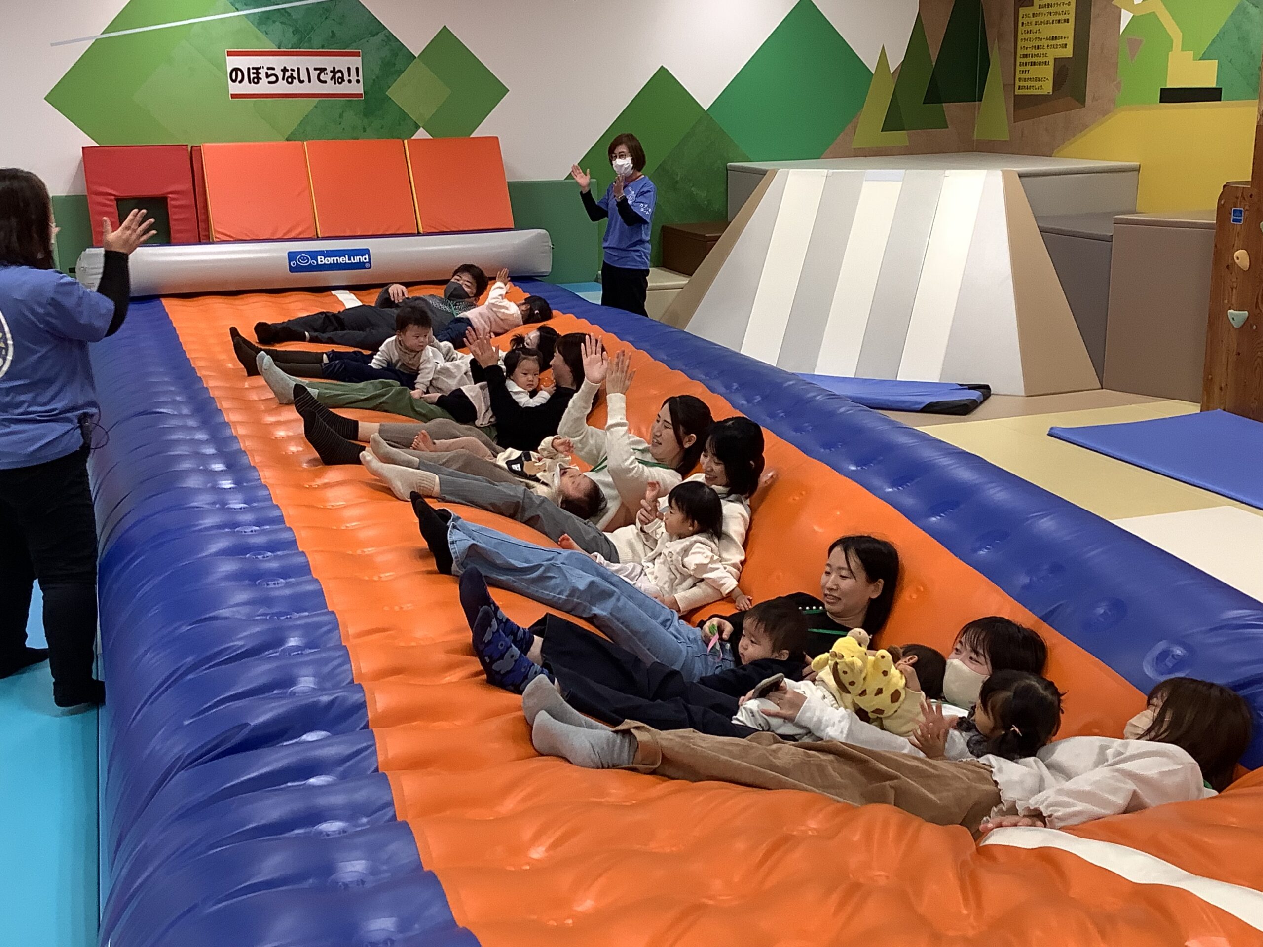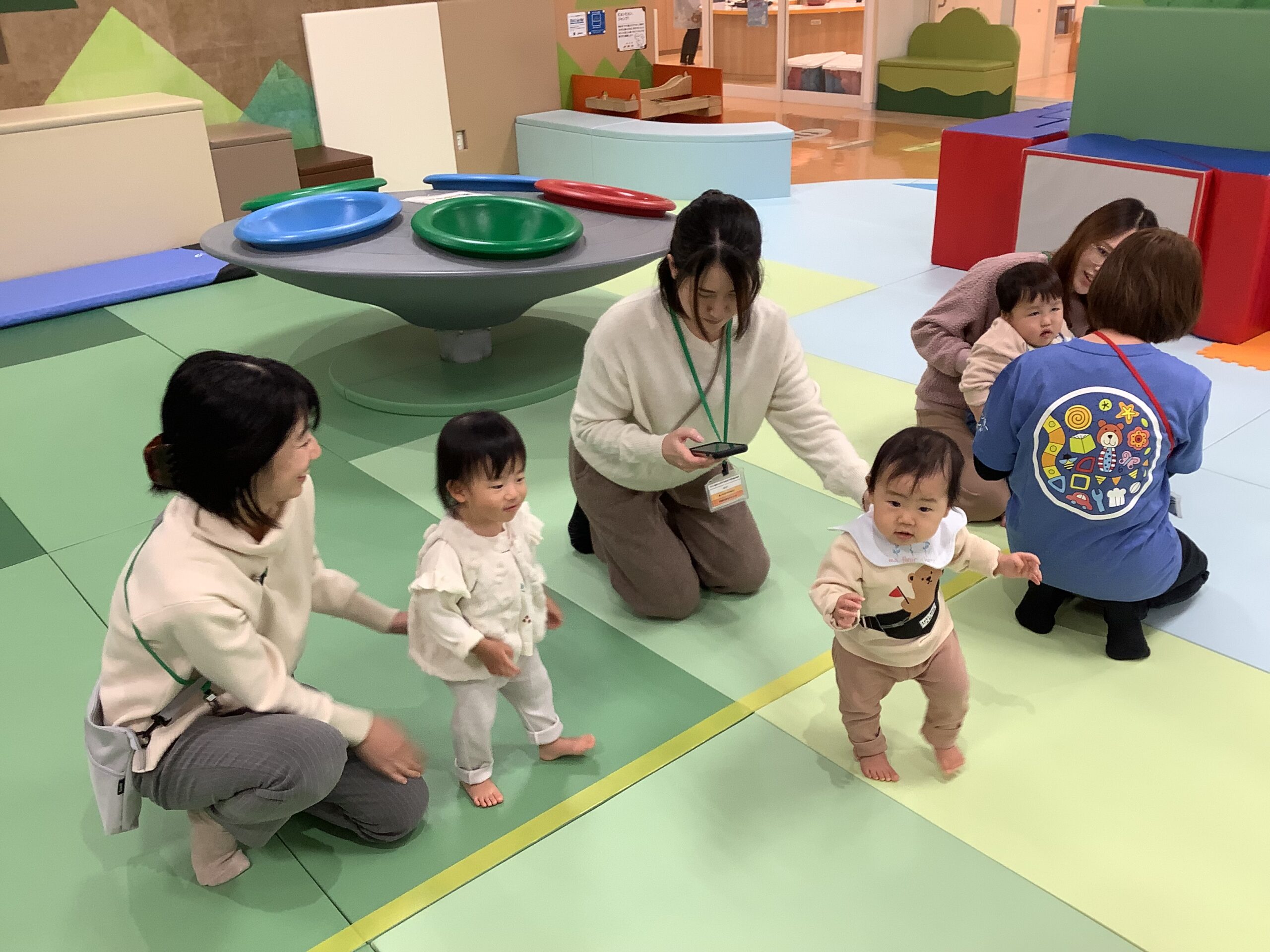 「よーいドン!」の合図で思いっきりかけっこをするお友だち、ママの方へ頑張ってよちよちするお友だち、ハイハイをしようと思ったらママが離れてしまい(写真を撮りに行き)泣いてしまうお友だちなど様々な姿がありましたが、最後はみんなゴール出来ましたよ(^^♪