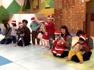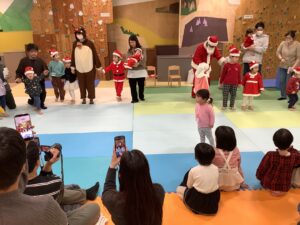 キラキラゆらめくキャンドルを持ち 女神さまと誓いをたて、サンタさんとトナカイさんにも聞きたいことは質問できたかな?みんなで「あわてんぼうのサンタクロース」を演奏したり、「ジングルベル」に合わせてのダンスも楽しかったですね (^_-)-☆ ステキなプレゼントをもらた後は、カブッキーも遊びに来てくれ一緒に記念写真も撮りましたよ✨