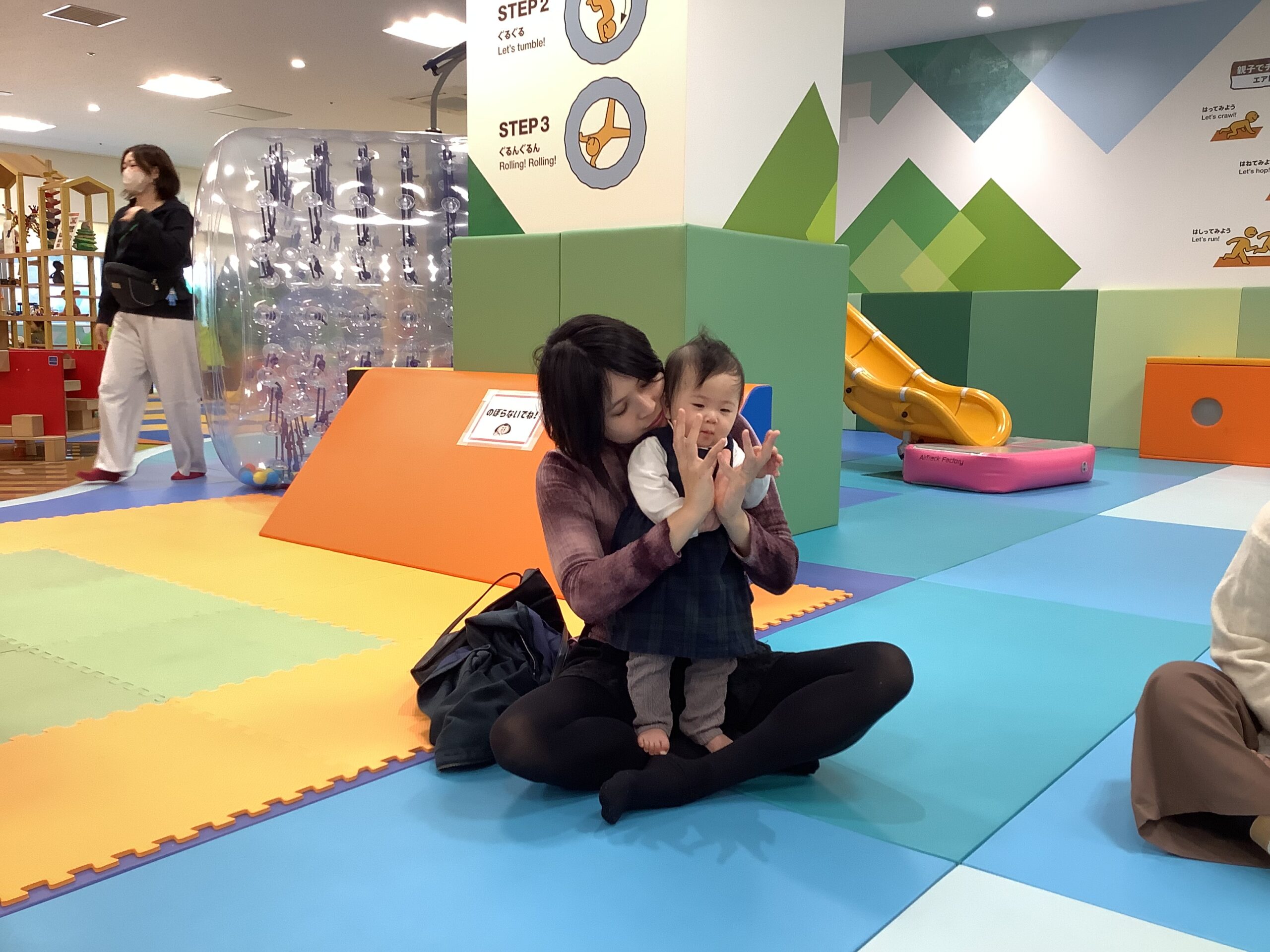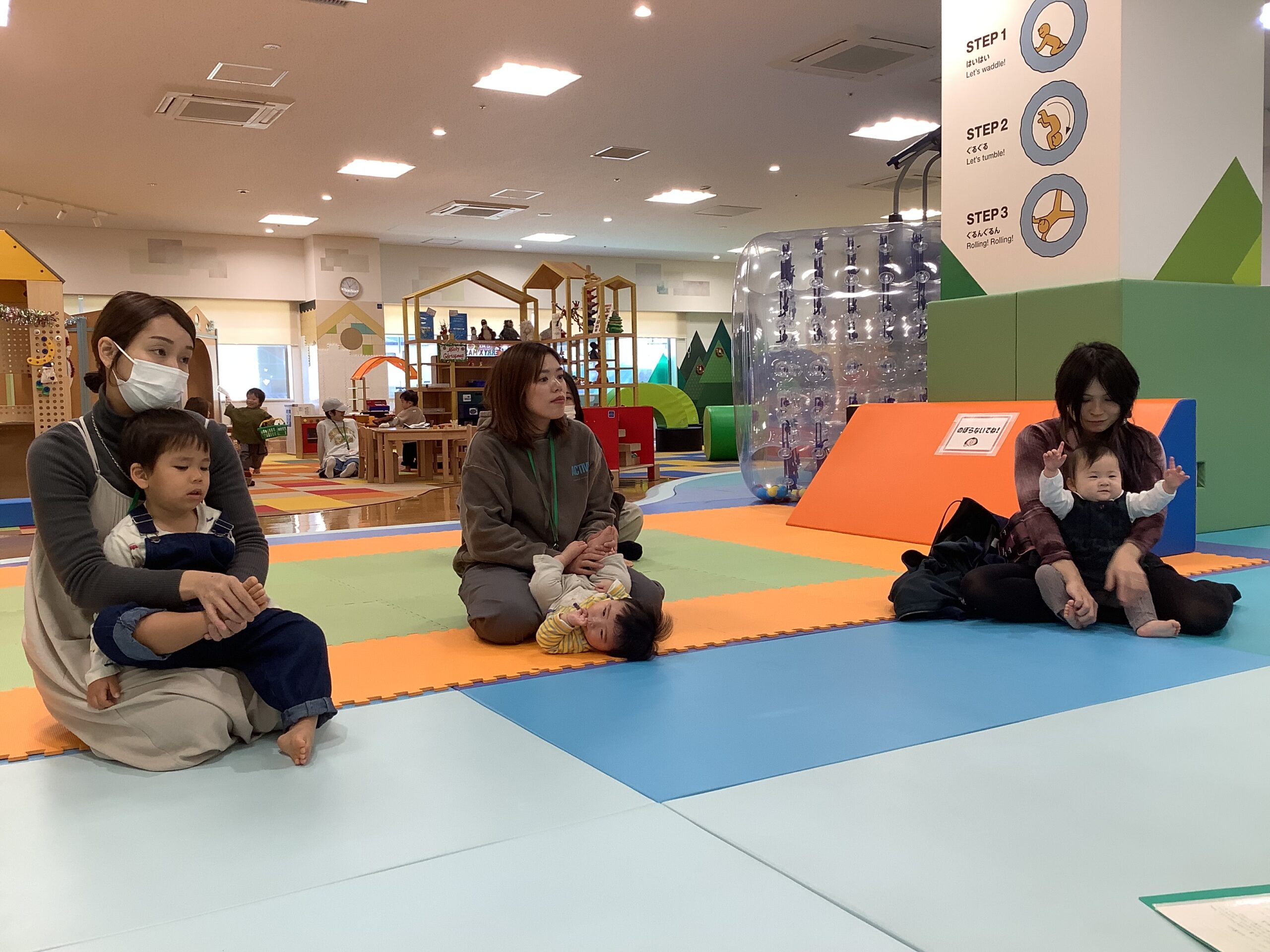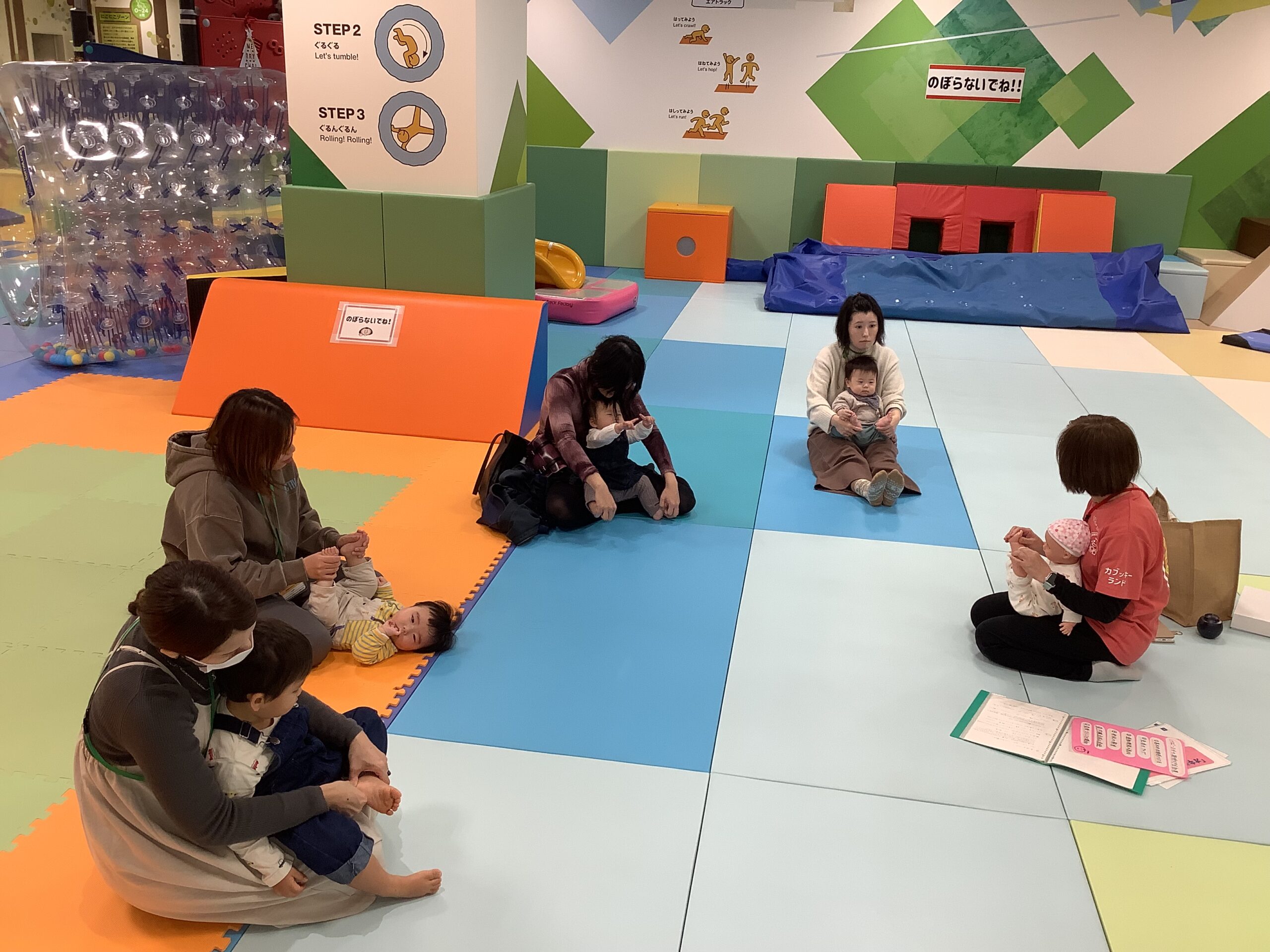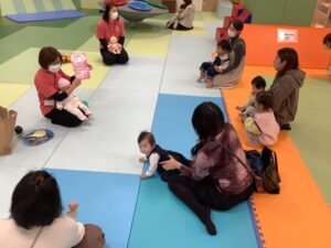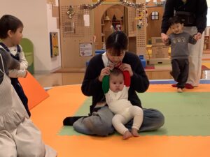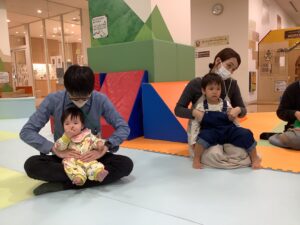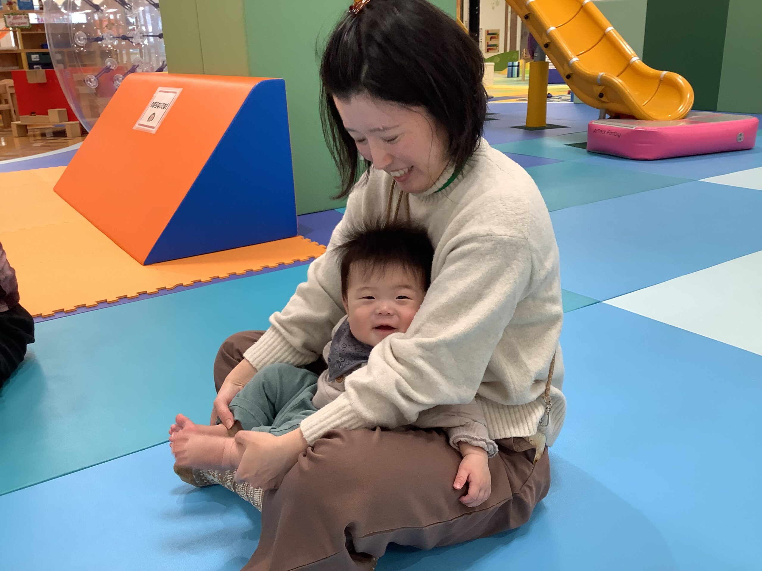 ♪おもちゃのチャチャチャなどの童謡を歌いながら、足やひざの裏をマッサージしたり顔を見ながらこちょこちょをしたりして優し時間を過ごしましたよ(≧▽≦)