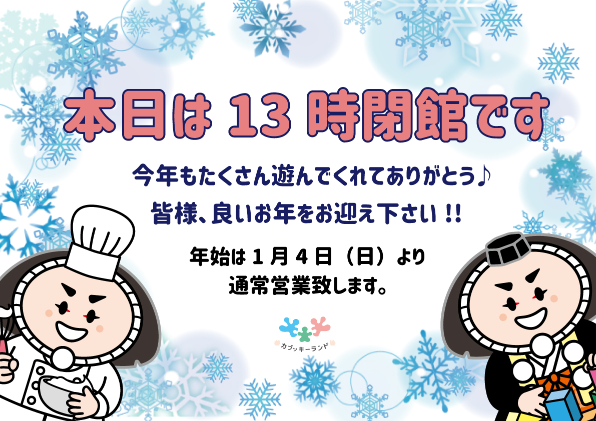 本日、カブッキーランドは年末最終営業日‼・・・13時閉館となりますので、予めご了承下さいますようお願いいたします。