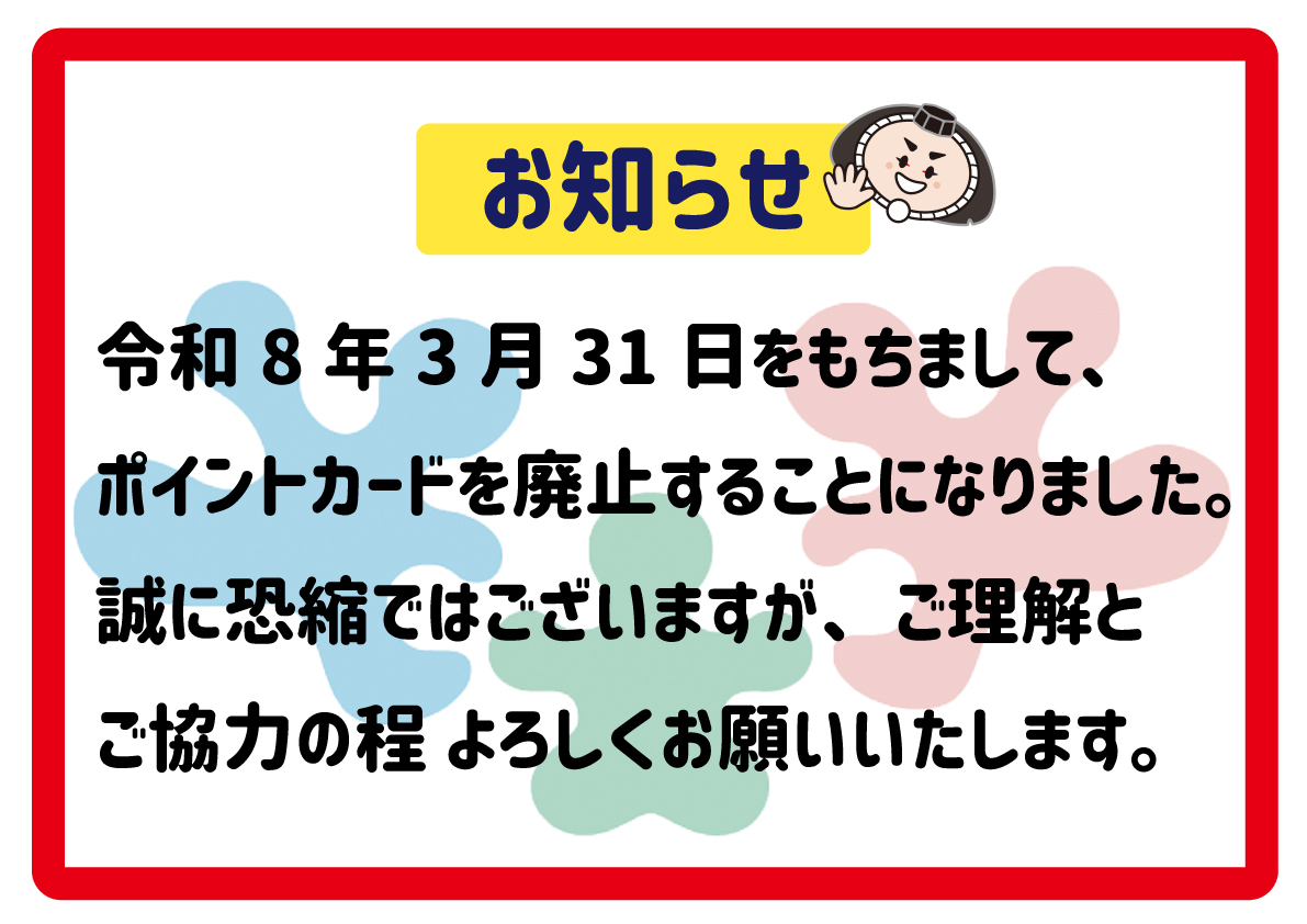 ※ポイントカード配布は、令和7年12月28日を持ちまして終了いたしました。