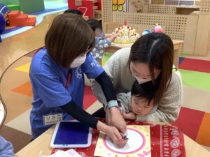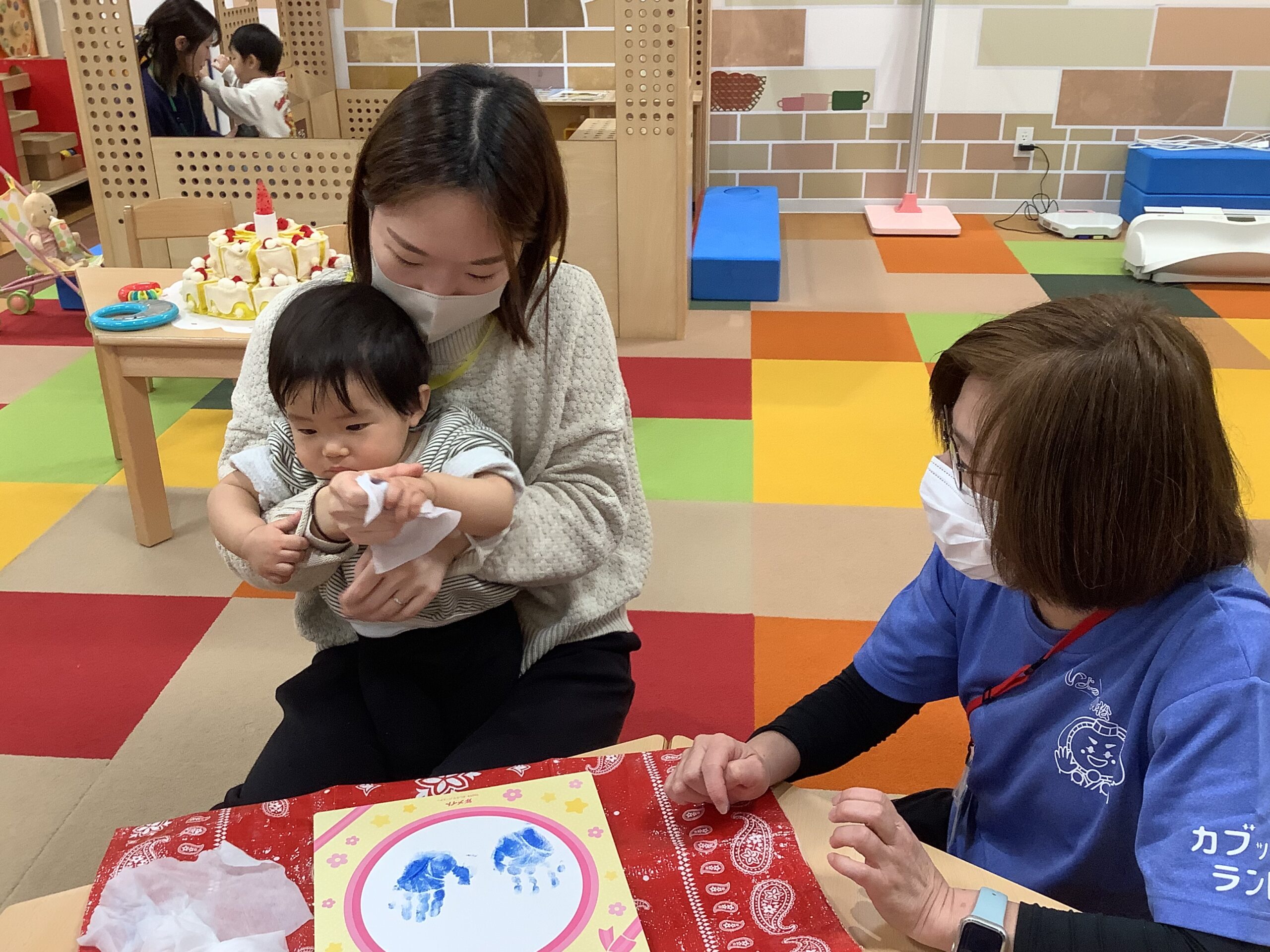 3人のお友だちが参加してくれ、カブッキーと一緒に楽しくお祝いしましたよ!みんなで歌ったり、手形足形も 上手に出来ましたね (^_-)-☆ 成長した姿を見守る お家の方の優しいまなざしが、ポカポカ暖かい春のようようでした✨お誕生日おめでとうございます!