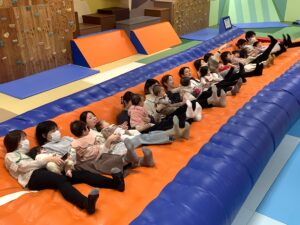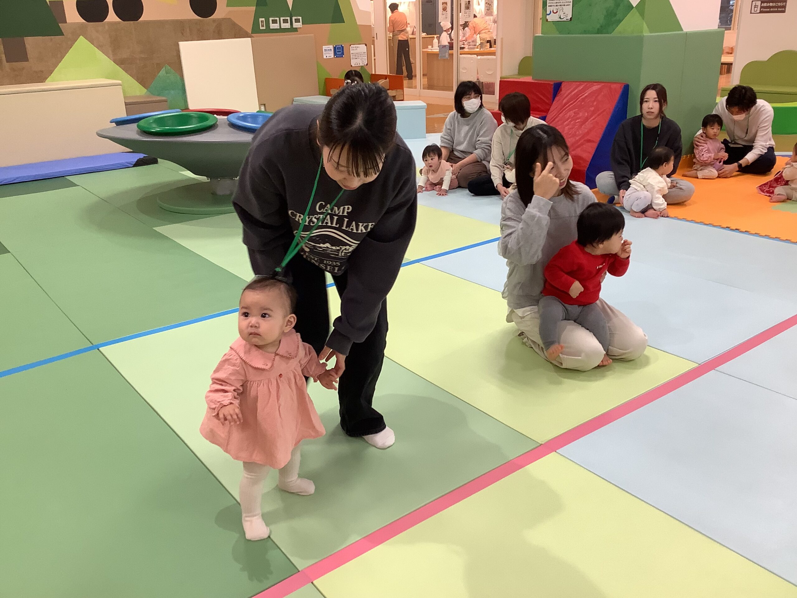 寒いなか たくさんのお友だちが参加してくれ、ワイワイ賑やかな会になりました!みんな自分のペースで、ゴール(お家の方)に向かってハイハイ・よちよち・かけっこ で頑張っていましたよ (^_-)-☆ ふわふわベッドでも楽しんでいる子もいれば、ビックリして泣いてしまう子など…みんな違って みんな良い✨ですね !!