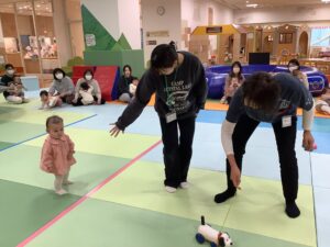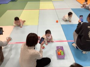 今日は、すくすくひろばで『ハイハイよちよちかけっこDON!』が開かれました (^^♪