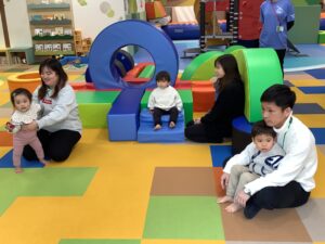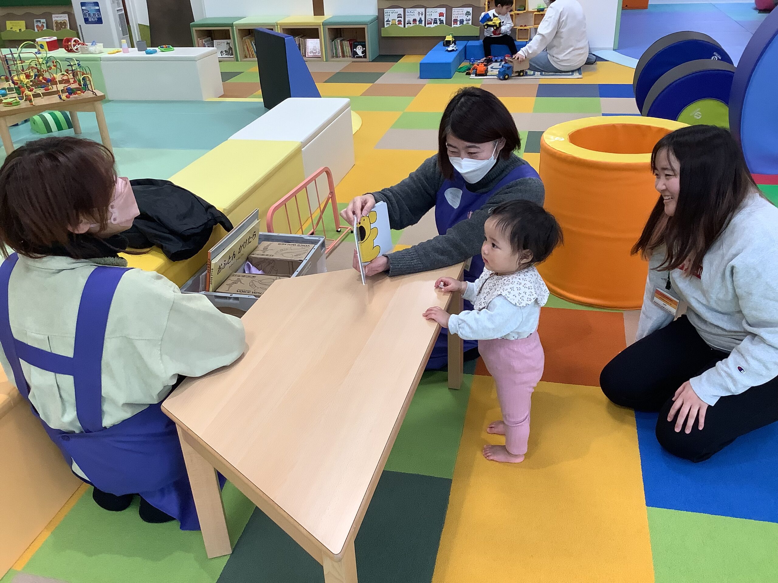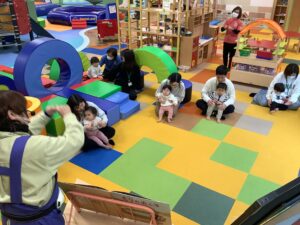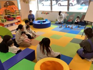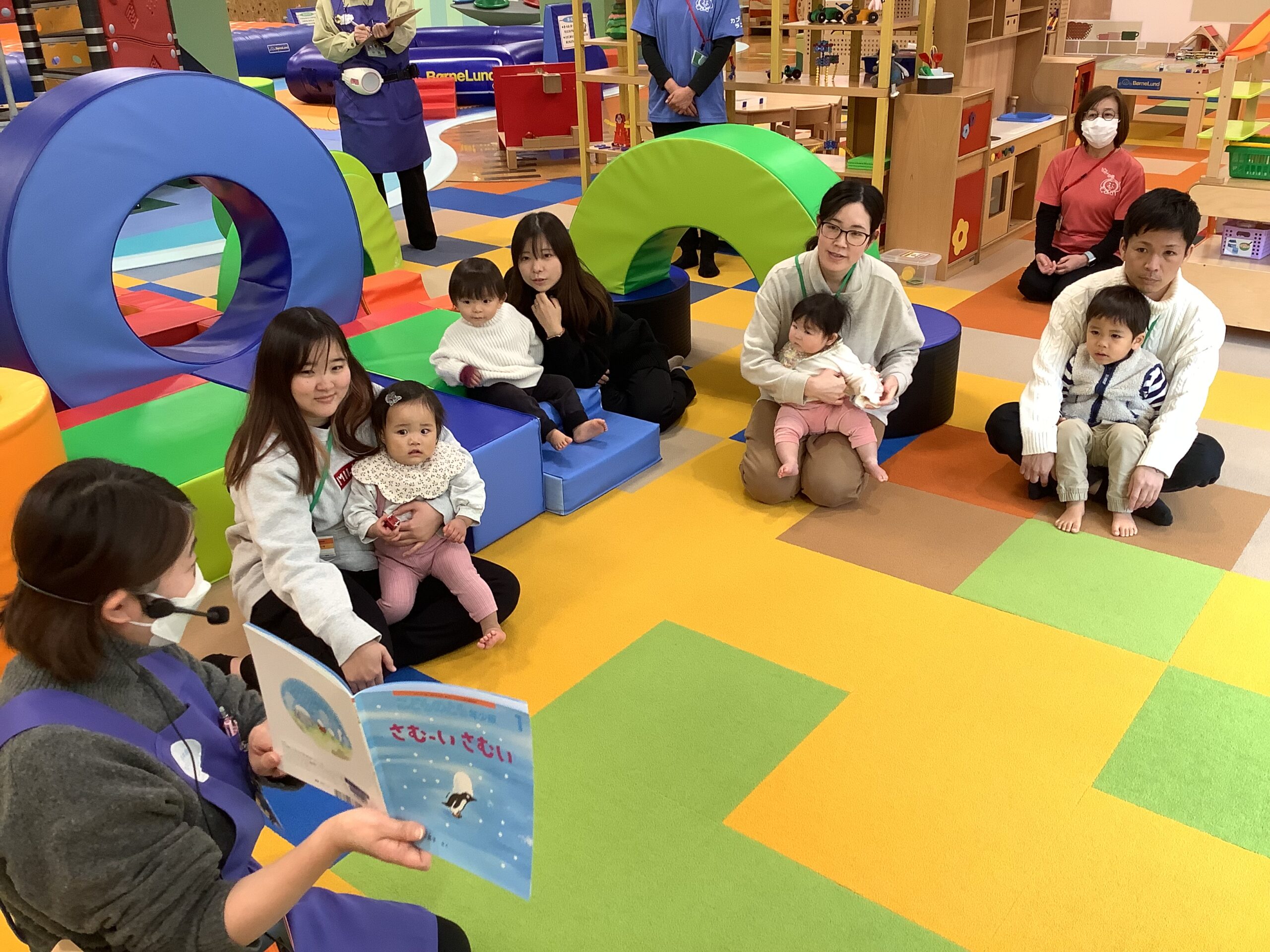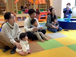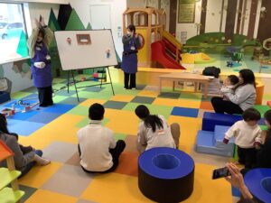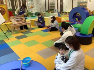 今日の『赤ちゃんとみんなのHappy smile会』は、絵本館の方が来てくれ「お話しの会」が開かれました (^^♪