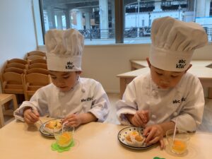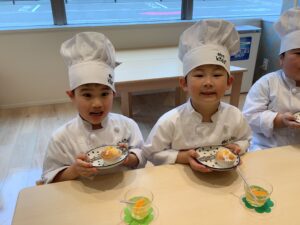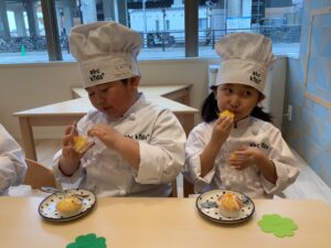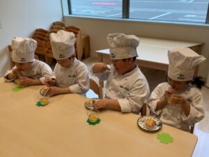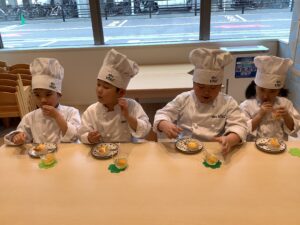 今日はクッキングスタジオで「せんだいこども園」のお友だちが、おやつ作りを楽しみましたよ (^^♪