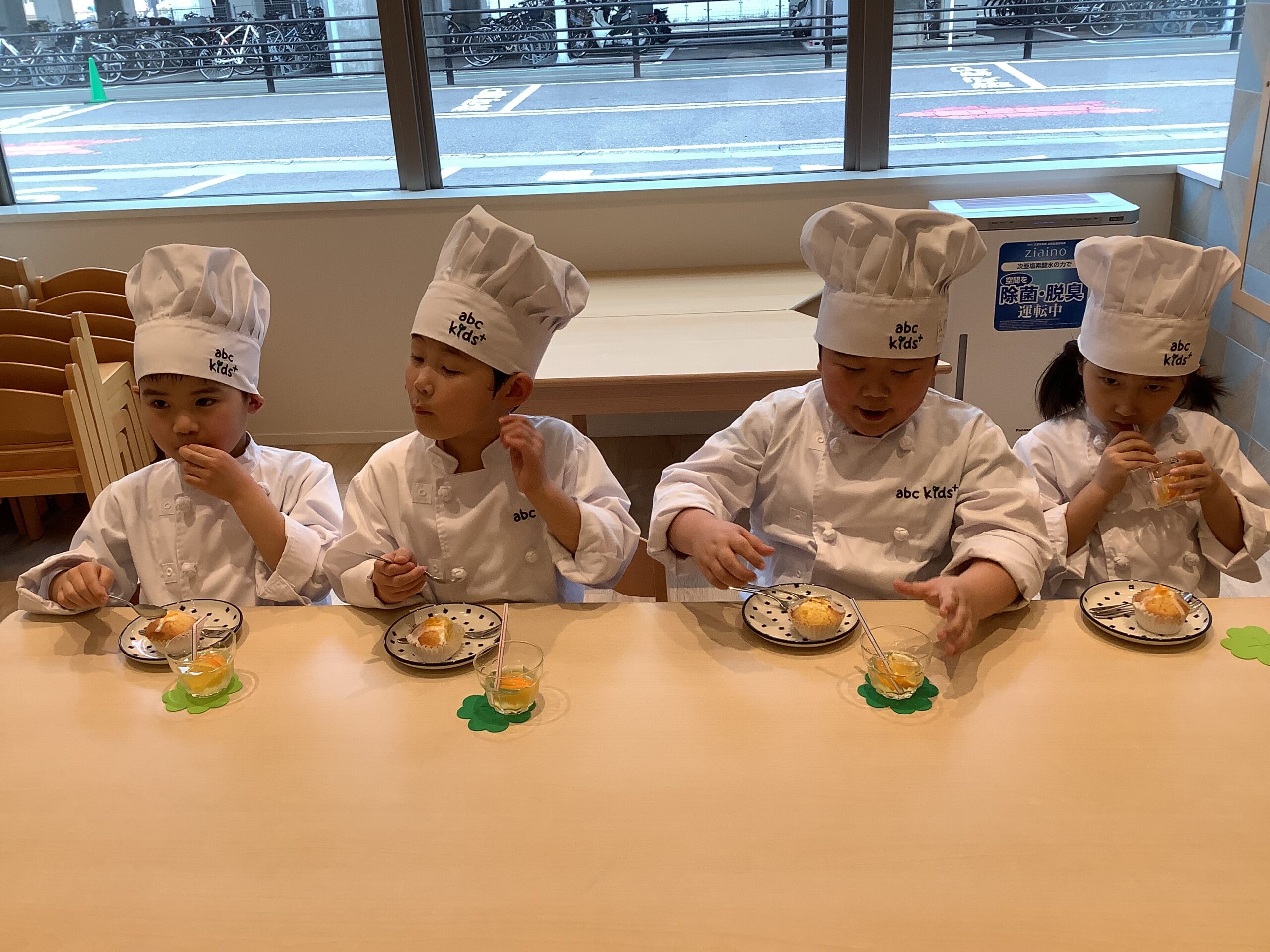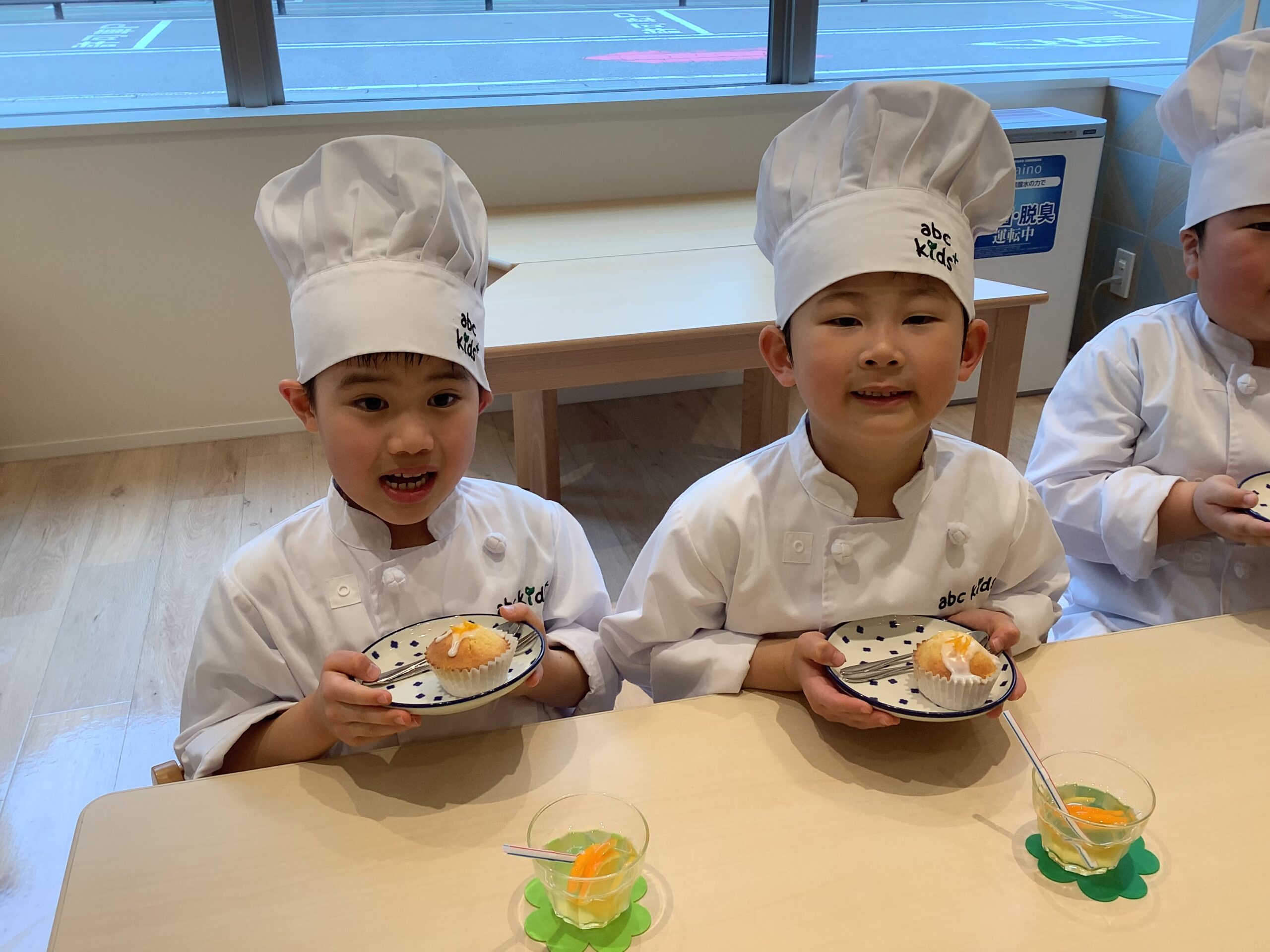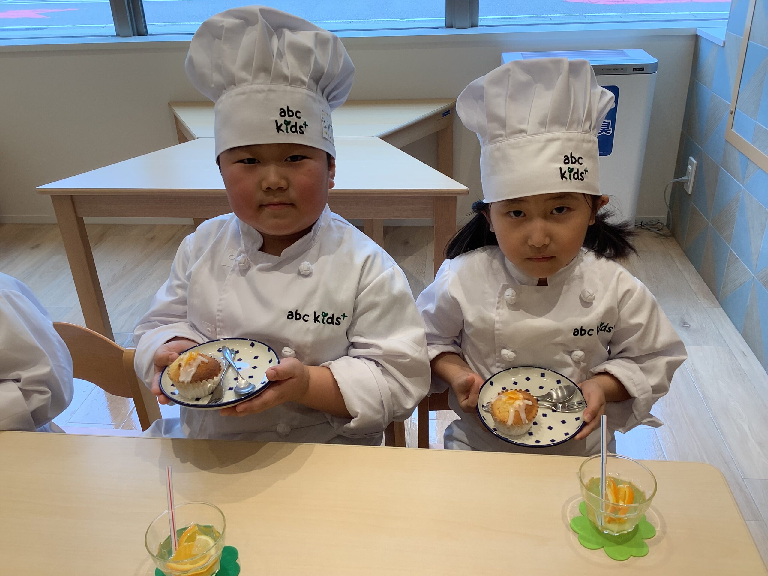 みんなで混ぜて、こぉ~んがり美味しく焼けた「オレンジマフィン」に、ひろばで遊んで 渇いたノドをうるおす「オレンジレモネード」をそえて!元気に「 いただきまぁ~す !! 」(^_-)-☆ 卒園の楽しい思い出になりますように✨