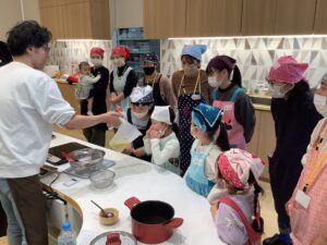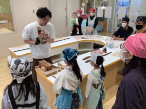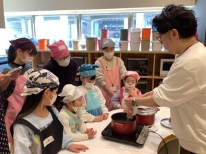 まず初めに、厳選された昆布とカツオ節を使った「だし」を味わいました!昆布だしには「グルタミン」かつおだしには「イノシン」の 美味しくなる魔法のことばを唱えましたよ!…2つを合わせた黄金のだしには「相乗効果」を唱え、パワーアップした うま味を味わうことが出来ました。黄金だし作りの実演を見たあとは、黄金だしの味噌汁と削りたての鰹節を乗せたホカホカご飯を「いただきまぁ~す!」(^_-)-☆ 本格だしの味を、しっかり五感で覚えました !!