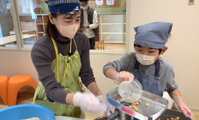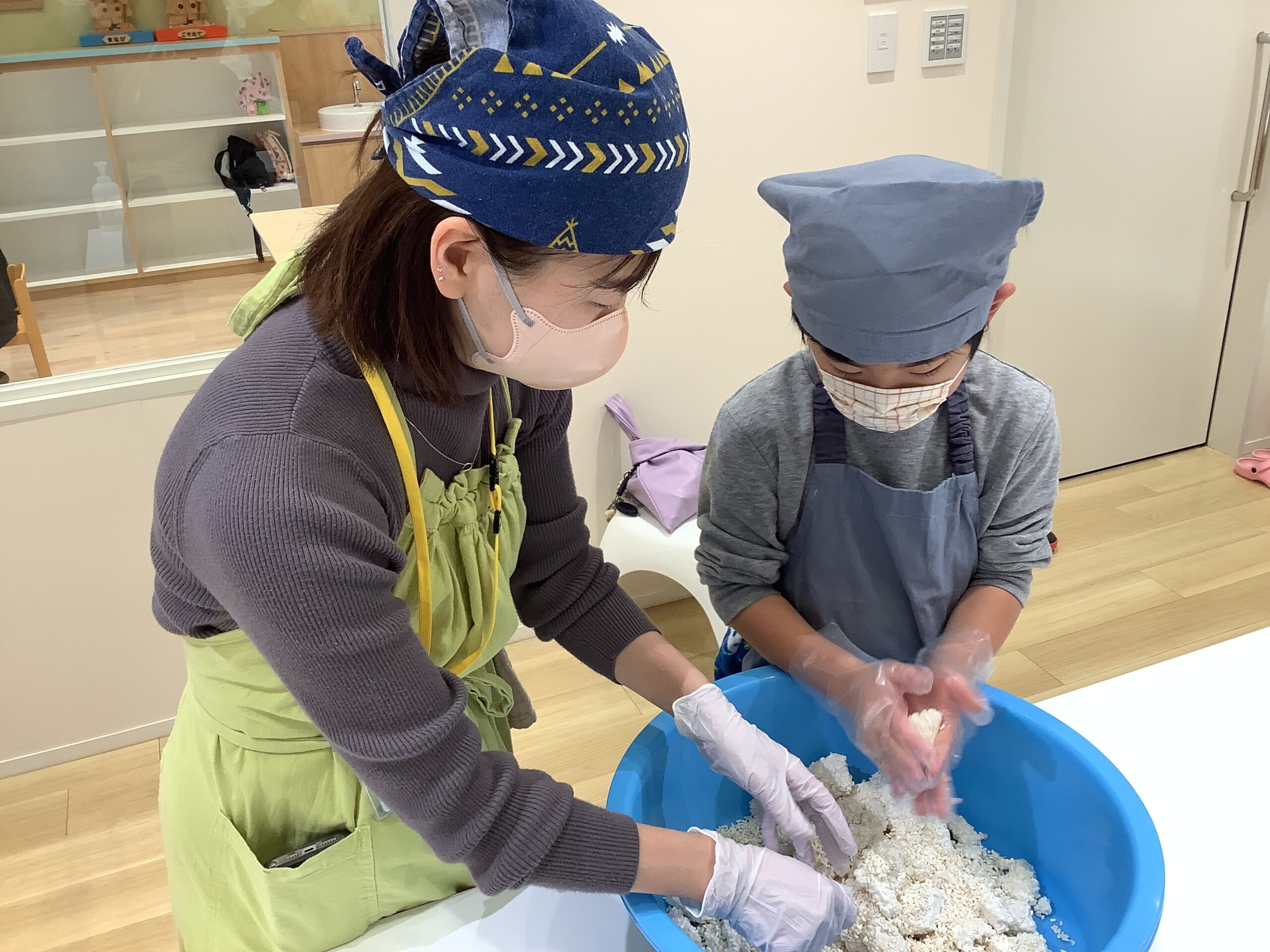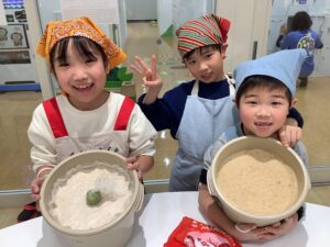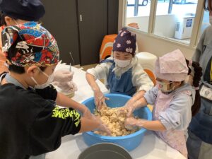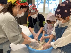 ゆでた大豆の香りに包まれながら「大豆」「糀」「塩」を使って 親子で楽しく力を合わせ!味噌作りに挑戦しました (^_-)-☆ 「美味しくなあれ!美味しくなあれ!」心を込めて作ったお味噌!半年後に食べるのが、と~っても待ち遠しいですね✨ご興味のある方は、ぜひ!来年チャレンジしてみて下さいね!お待ちしておりまーす (*^-^*)