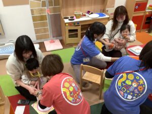 ステキな7名のお友だちが参加してくれ、カブッキーと一緒に誕生日のお祝いをしましたよ!みんな手形・足形も頑張って とてもキレイに取れていました (^_-)-☆ 小さな小さな かわいい手と足、ずっとずっと大切にしてくださいね!なん年か経って 比べてみるのも楽しいですよ!
