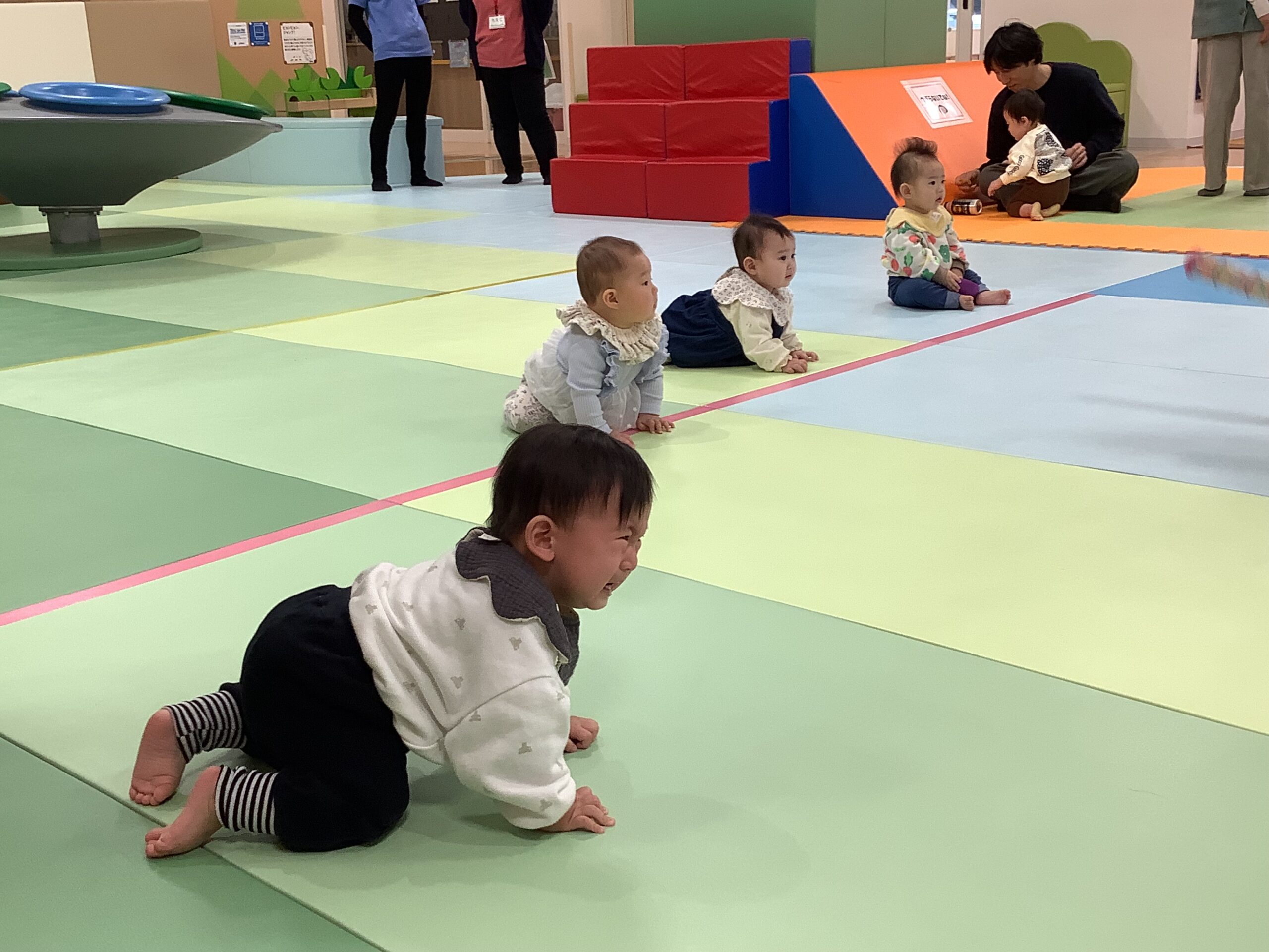 今日は、すくすくひろばで『ハイハイよちよちかけっこDON!』が開かれました (^^♪