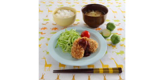 2月のクッキングメニューは『キャベツメンチ・キャベツと油揚げの味噌汁・ごはん』(お持ち帰り)です !…